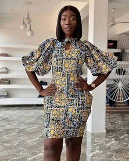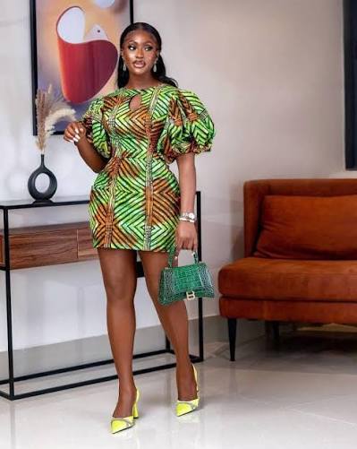 - Mini Ankara gowns with puffy sleeves.