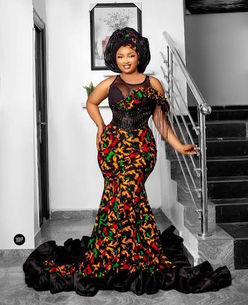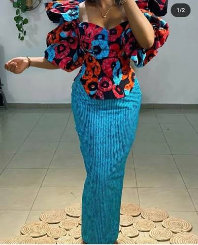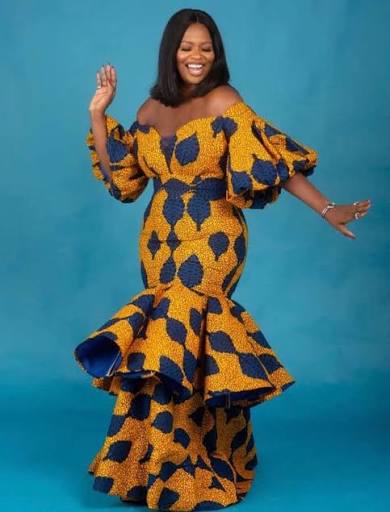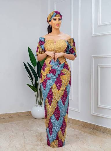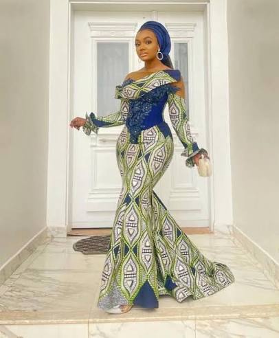 Off-shoulder Ankara gowns remain a classic choice. In 2025, designers are adding puff sleeves, lace details, and ruffles to give them a modern twist. This style works well for both casual and formal events.