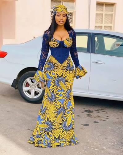 The corset style is one of the biggest Ankara fashion trends in 2025. It gives a snatched waist look and is perfect for curvy women. Many ladies love to wear Ankara corset gowns for weddings, birthdays, or traditional events.